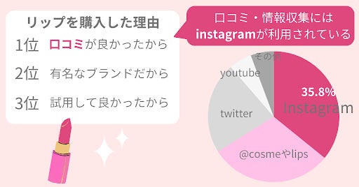 ●リップ購入の理由1位は「口コミが良かったから」情報収集に最も利用されるのはインスタグラム!