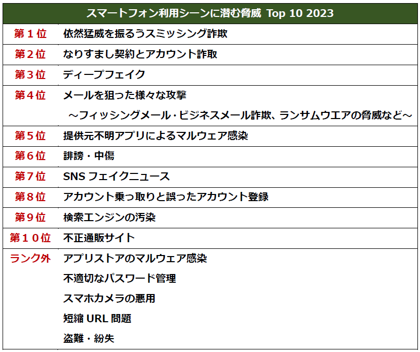 <スマートフォン利用シーンに潜む脅威 Top10 2023>