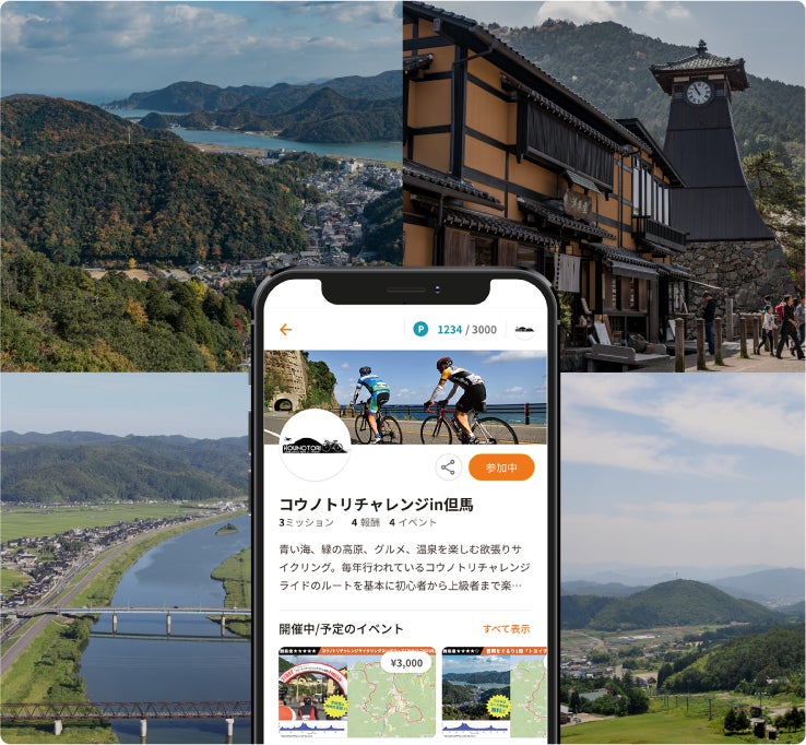 兵庫・但馬地域では2011年より、「山陰海岸ジオパーク」を但馬地域の観光資源として全国にPRするための活動として、「コウノトリチャレンジライド」がスタートしました。タイムを競うレースではなく地域住民との交流と観光振興を目的とした1DAYサイクリングイベントです。コースは兵庫県のサイクリング認定コースにも認められ、整備も進んでいます。毎年850人〜900名のサイクリストが集結する人気イベントでしたが、新型コロナウイルス感染拡大を受け、2年連続で中止になりました。2021年10月、ユーザーが自身のスマホを使って好きな時に参加できるモバイルスタンプラリー型のイベント「コウノトリチャレンジin但馬」に進化。今年は持続可能なサイクリングイベントの形を模索し、定員20~30人にグループを分けて開催します。