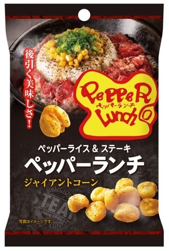 ペッパーランチの代表メニューである「ビーフペッパーライス」の味を再現した「ジャイアントコーン」を販売いたします。ペッパーランチのビーフの旨味とペッパーの香りを再現しました。