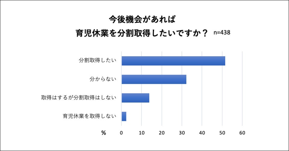過半数が「今後機会があれば分割して育児休業を分割したい」と考える結果となりました。