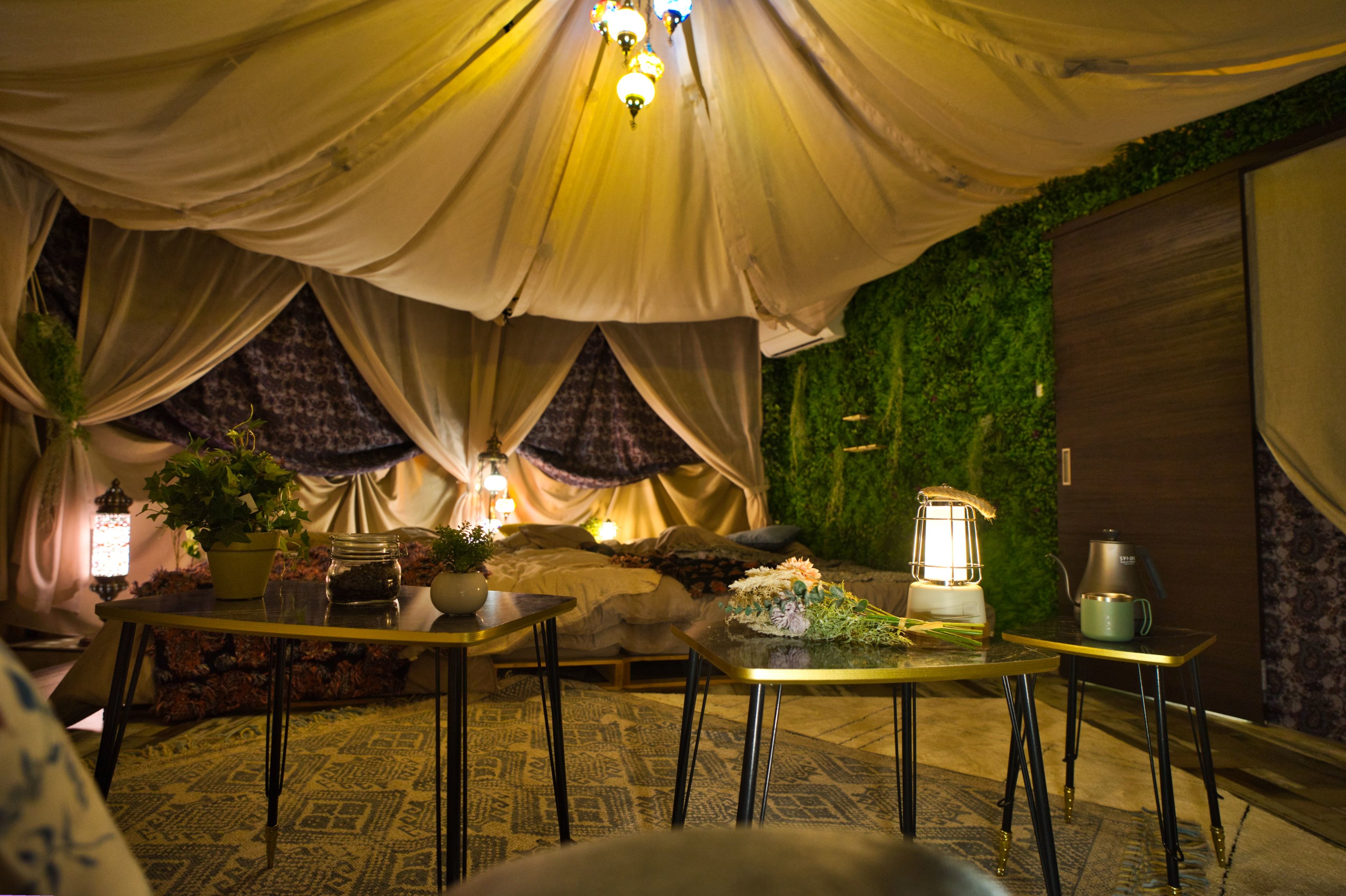 宿泊するゲルは広々利用でき、各ゲルによりイメージが代わります。
