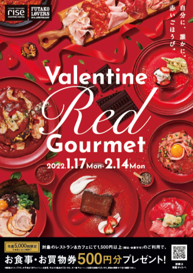 東急田園都市線・大井町線 二子玉川駅直結の複合型商業施設「二子玉川ライズ・ショッピングセンター」では、2022年バレンタイングルメフェア「Valentine Red Gourmet」を2022年1月17日(月)~2月14日(月)の期間で開催します。
