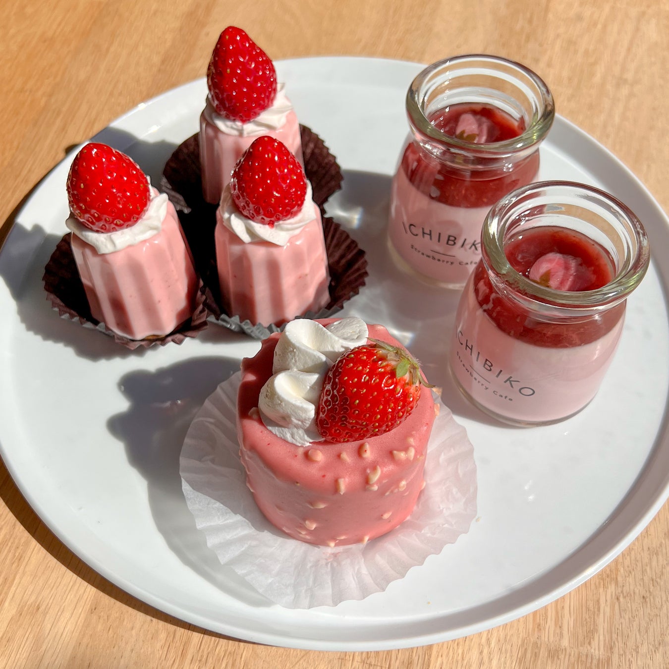 手前:いちごのパンナコッタ<さくらいろ> 奥:ミガキイチゴプリン(いちごカスタード)