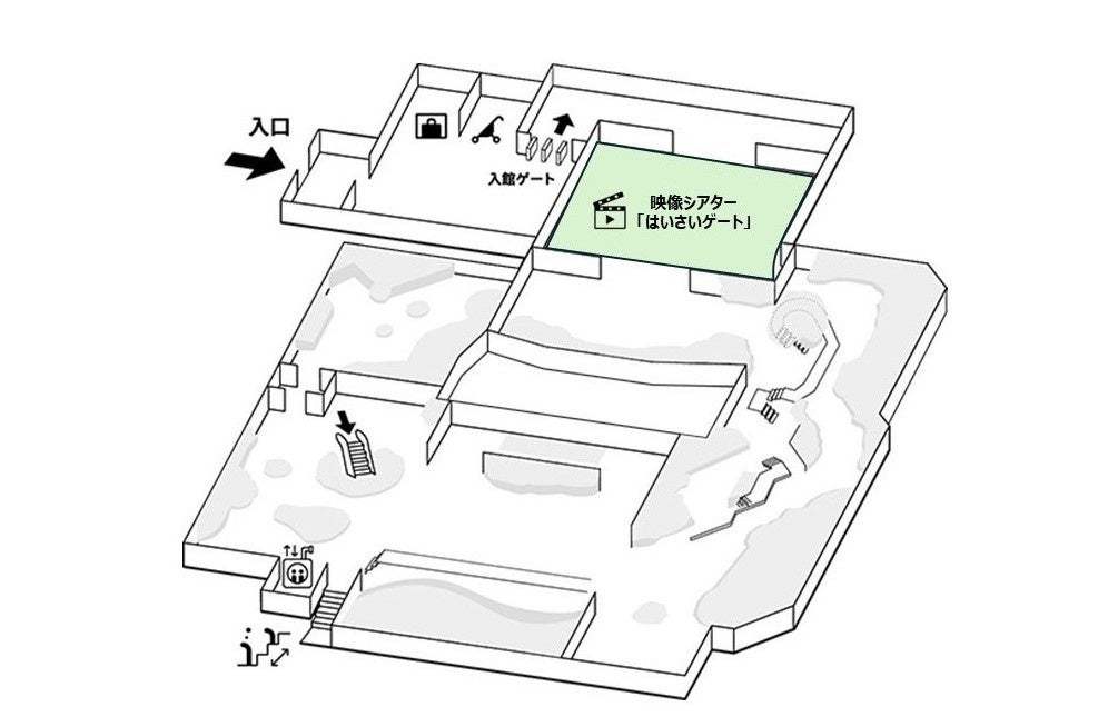 映像体験エリアの「はいさいゲート」では、沖縄県観光振興に資するべく沖縄県下の観光名所を取り上げた映像コンテンツの放映を行っています。沖縄の大自然が織りなす美しい景観を大迫力の映像で来場者へ届けるため、幅21.5メートル、高さ3.5メートル(約75㎡)の大型LEDビジョンを導入いたしました。シアターを「コの字」に囲むように設置されたLEDビジョンには、沖縄県の離島で水中撮影、ドローン撮影した臨場感あふれる映像が映し出されます。また、映像に合わせて、沖縄県で収録した自然の効果音と賑やかな音楽が一体となったサラウンド音響(※)がシアター全体を包み込み、送風などの4D演出とともに来場者を沖縄の絶景を巡る旅にお連れします。