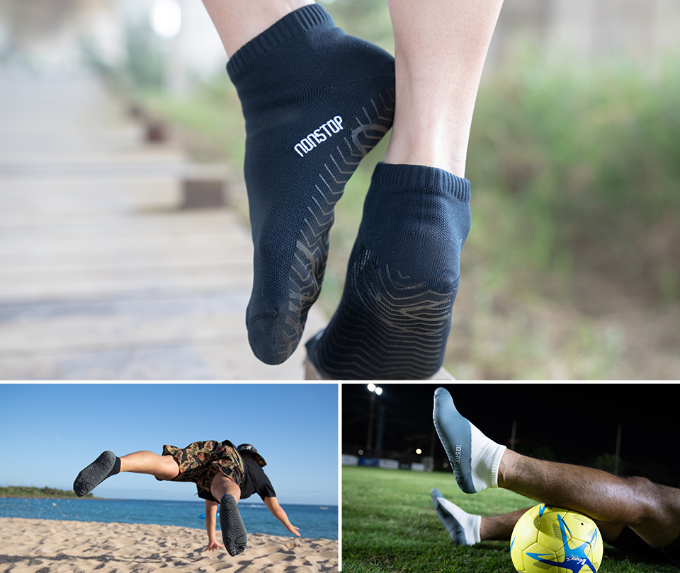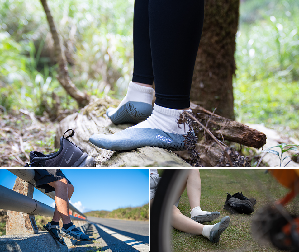- 靴の中にNONSTOP2.0を履いた場合、靴が滑りにくくなり、行動時のグリップ力が向上し、より効率のいい動きができるようになります。