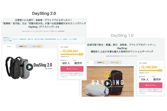 過去には「究極の防水性」と「耐摩耗・防刃」素材を兼ね備えた「DaySling2.0スリングバッグ」のプロジェクトを実施し、合計2500万円以上の支援を集めました!