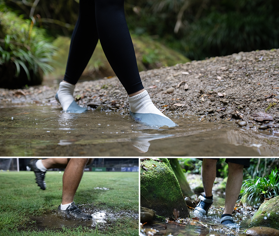 雨の日や水遊びだけでなく、足動きの効率改善やお家での滑り防止にも!災害時にも活躍しそう!