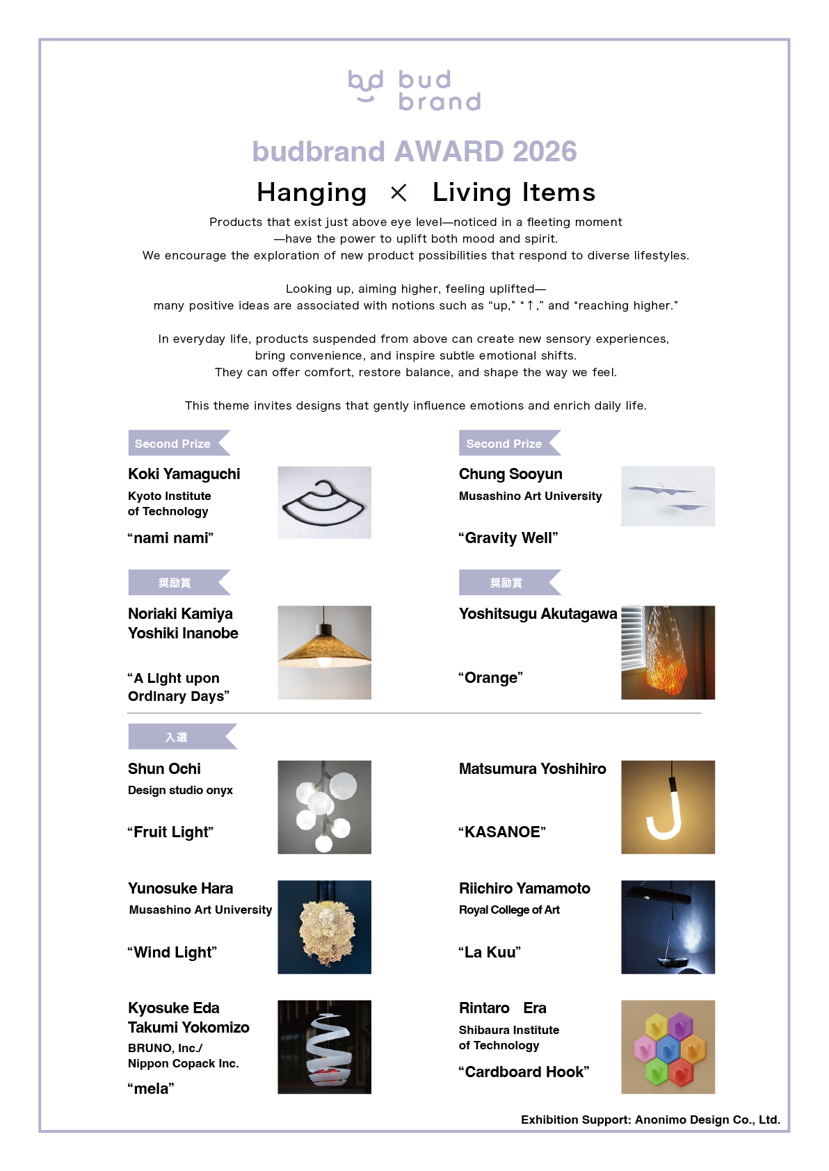 At the bud brand AWARD 2026, 10 works have been selected from 120 submissions and will be exhibited.