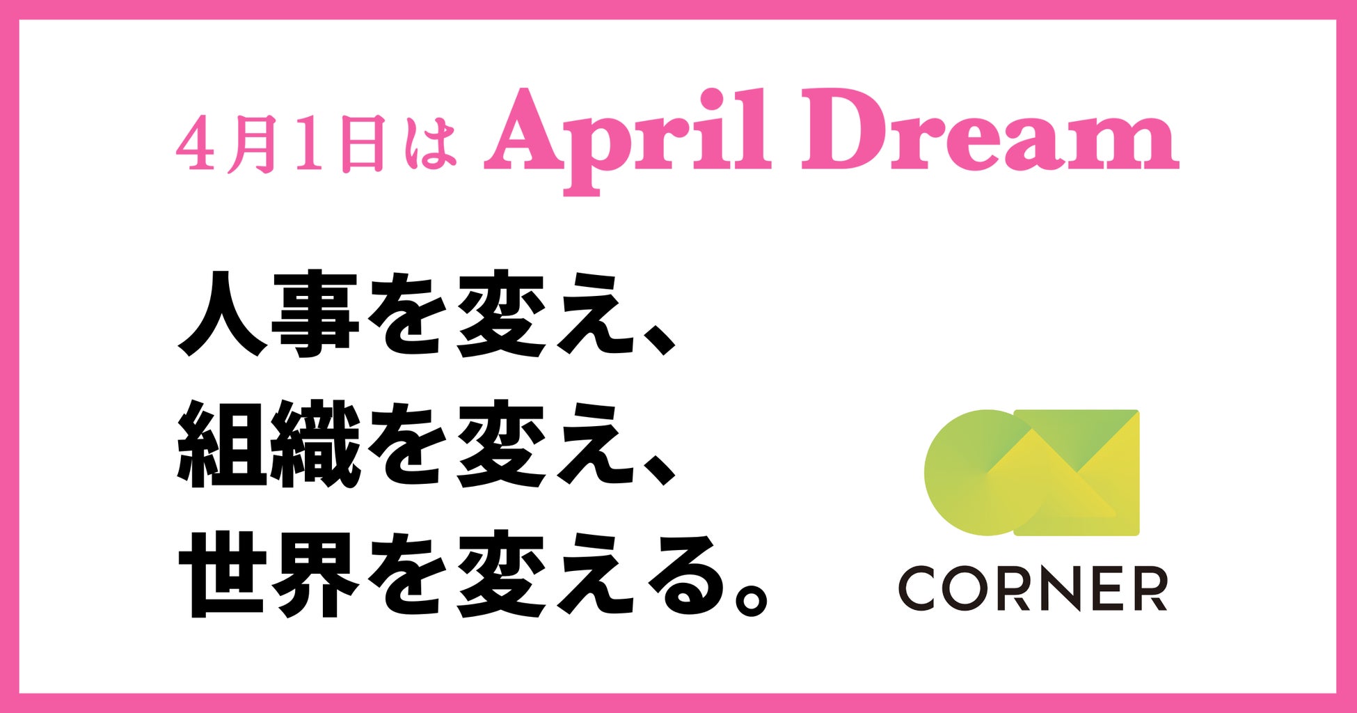 株式会社コーナー(所在地:東京都渋谷区 代表取締役:門馬 貴裕、以下コーナー)は、4月1日を夢を発信する日にしようとするApril Dreamに賛同しています。このプレスリリースは、私たちのApril Dreamです。
