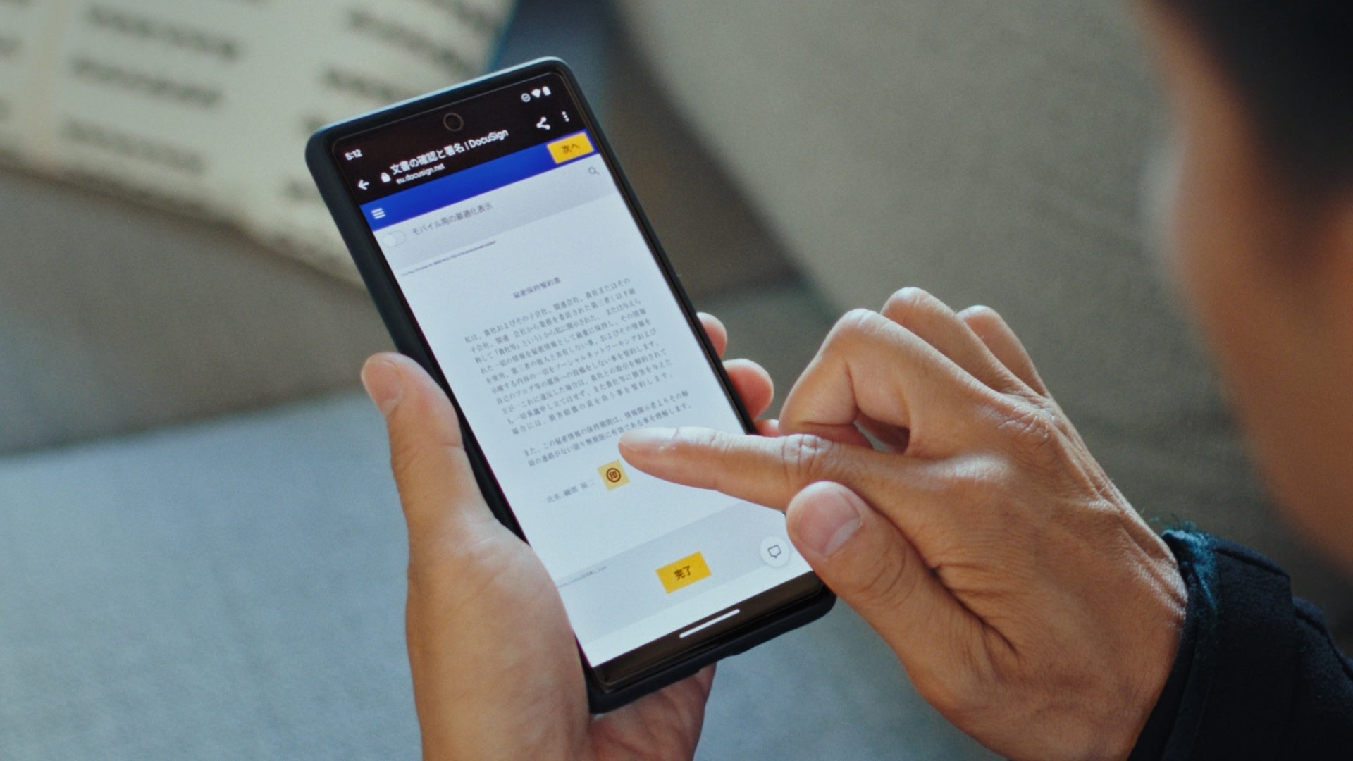「ドキュサインの電子署名は安心して利用できますね。『あ、ドキュサインでサインするのね。はい、これで』って、ポンってすぐにサインしてしまいます。もう、電子署名は当たり前のものって感じです。ハンコの文化も大切ですけど、今はオンラインでの契約が当たり前の世の中になっているんですよ。今回お仕事させてもらったからってわけではないですけど、今すぐ電子署名を取り入れるべきです。日本でもほとんどの方がスマホを使っているので、(いろいろなデバイスで使える)ドキュサインの電子署名なら簡単に使えますし。“これからは、ドキュサイン”ですね。」(綾部祐二さん)