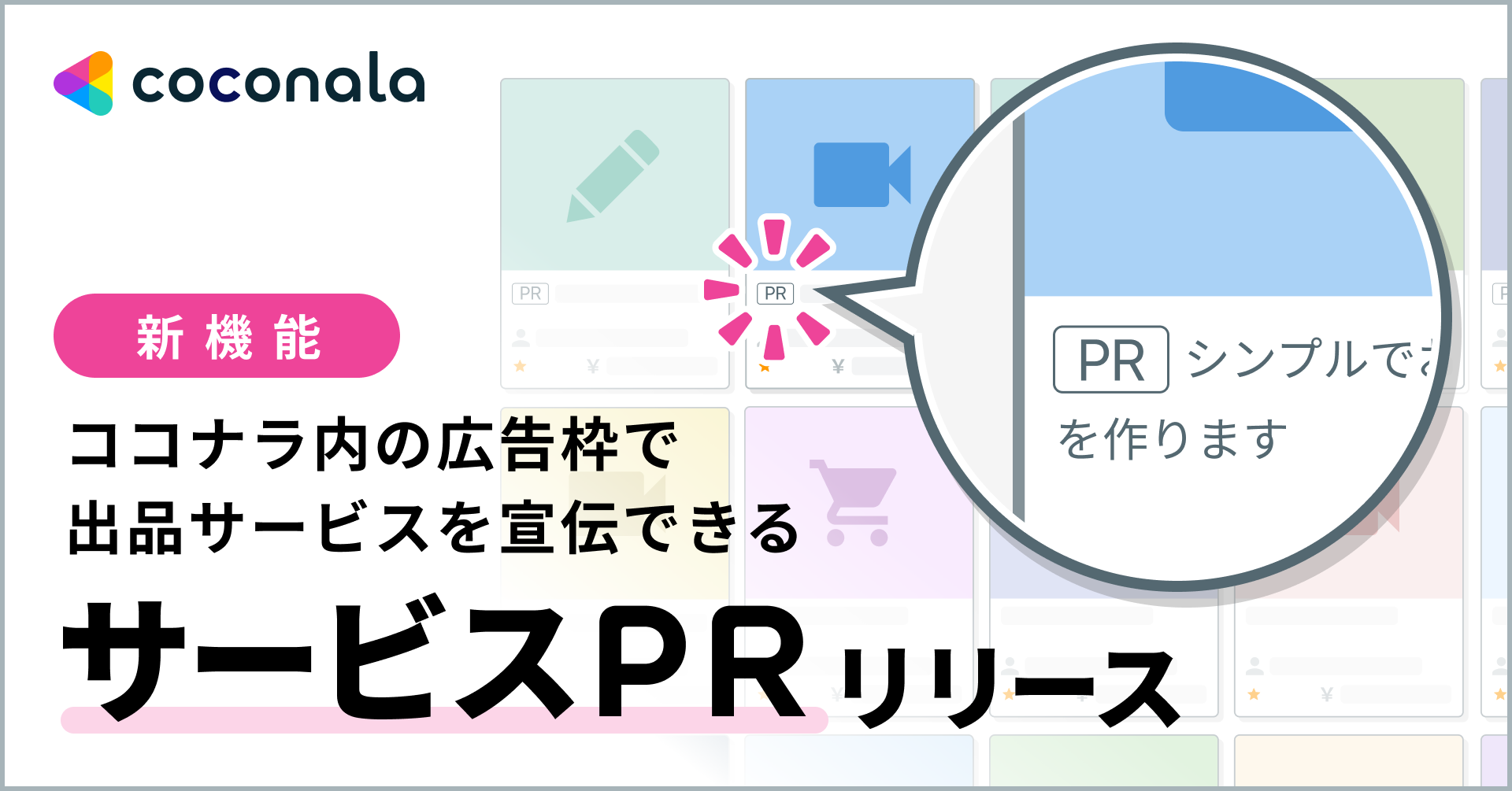 日本最大級のスキルマーケット「ココナラ(https://coconala.com/)」を運営する株式会社ココナラ(本社:東京都渋谷区、代表取締役社長CEO:鈴木歩、以下ココナラ)は、出品者がココナラ内の広告枠にサービスを掲載できる「サービスPR機能」の提供を開始しました。