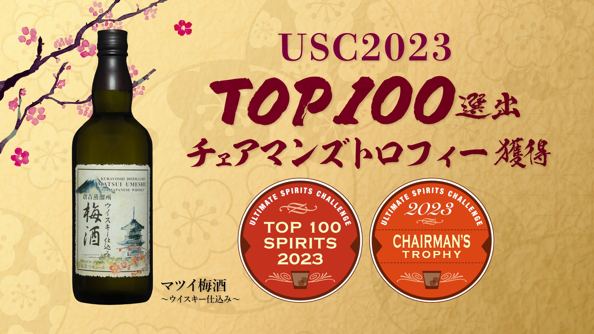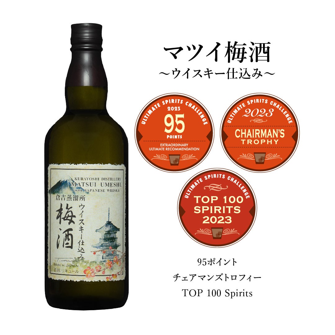 松井酒造合名会社(以下、倉吉蒸溜所 所在地:鳥取県倉吉市)の「マツイ梅酒~ウイスキー仕込み~」は、アメリカで開催された世界最高峰のスピリッツ品評会であるULTIMATE SPIRITS CHALLENGE 2023(以下、USC)において、全世界よりエントリーされた約1,500商品の中から優れた100商品のみが選ばれる栄誉ある賞【TOP100】、さらにリキュール部門において最も評価の高い商品に贈られる【チェアマンズトロフィー】を獲得しました。