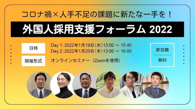 今回のフォーラムでは、2022年1月19日(水)と1月20日(木)の2日間にわたり、病院から警視庁[宮本1] まで各業界のプロが外国人採用に関する最新動向や具体的な事例等を解説します。