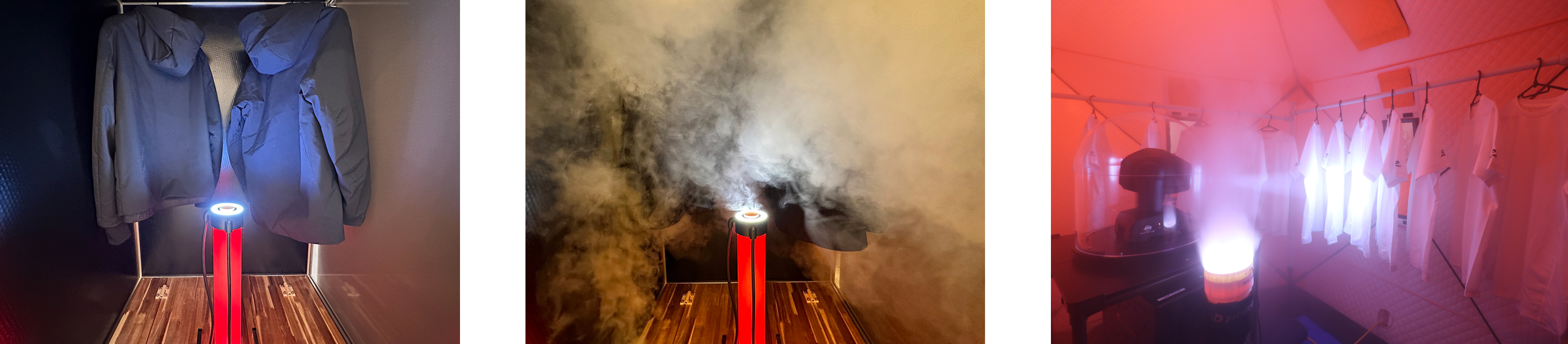 「暮らしまるごとリラックスコーティング」をコンセプトに、カラダをリラックス状態へとサポートするファイテン最高レベルの技術「ナノメタックス」と光テクノロジー「健光浴®」の光を照射させて、霧状に噴霧コーティングする水煙加工を用いたファイテンの最先端技術です。
