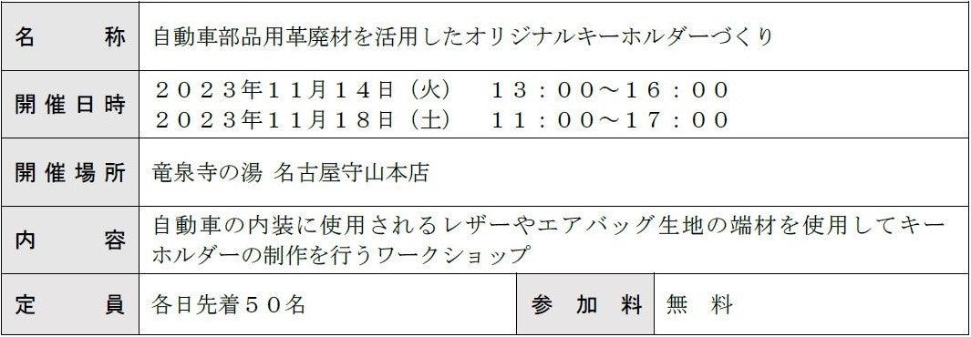 本件は、オークランド観光開発の「お客さまとともにサステナビリティ推進を加速させたい」というニーズに対し、“地域商社機能”を有するOKBが豊田合成とのコラボアイテムの制作・商品化を提案したことがきっかけで実現しました。コラボアイテムは、ビームスでビジネスプロデュース事業を担うディレクターズバンクの南馬越 一義 氏が監修し、本日から「竜泉寺の湯 名古屋守山本店」などで販売されます。また、本日と11月18日(土)には両社のコラボレーションを記念したイベント(ワークショップ)も開催します。