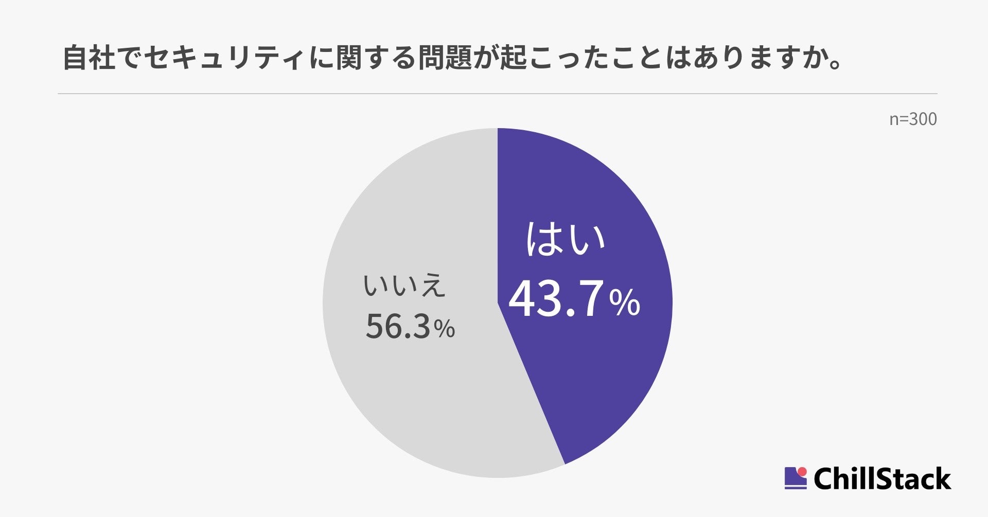 自社でセキュリティに関する問題が起こったことはあるか尋ねたところ、43.7%が「はい」と回答しました(n=300)。