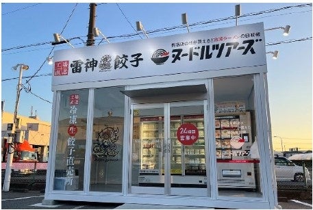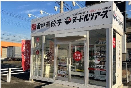 本提携により、有名ラーメンの“本物のスープ”と丸山製麺の“麺”を使用してコラボした商品が、24時間いつでも購入できる冷凍ラーメン自販機『ヌードルツアーズ』( https://noodle-tours.com/ )を、埼玉県三郷市(ダイナム戸ヶ崎店)と群馬県伊勢崎市(ダイナム群馬伊勢崎宮子店ゆったり館)の2店舗に設置し、テスト販売を開始しました。なお、本取組みは『ヌードルツアーズ』と『雷神餃子』の合同出店です。