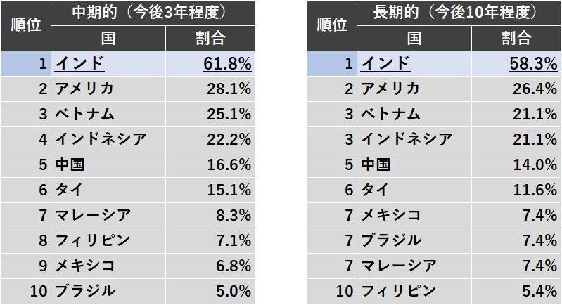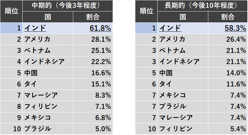 <中・長期的に有望と考える事業展開先国名に関する調査結果>