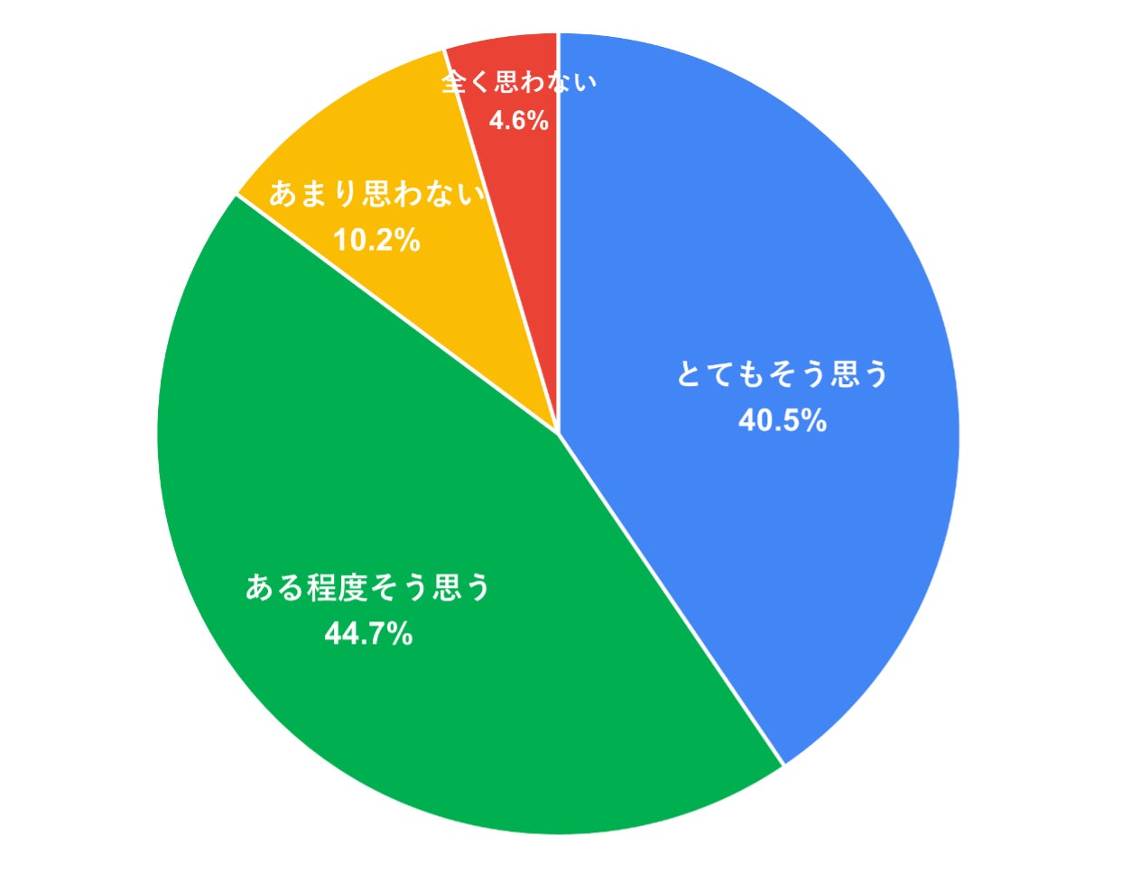 ・質問「交通安全に対する意識が高まりましたか?」に対し、40.5%が「とてもそう思う」、44.7%が「ある程度そう思う」と85.2%が前向きな回答。