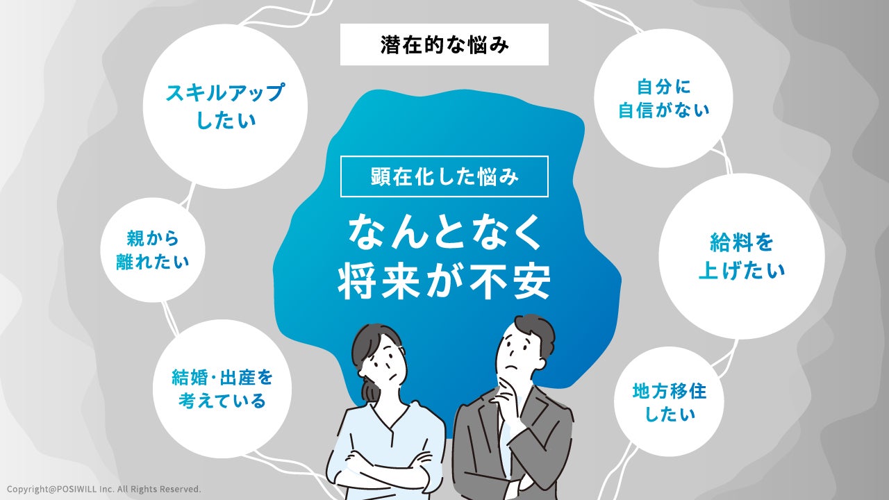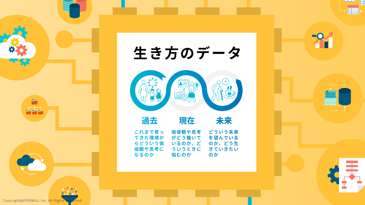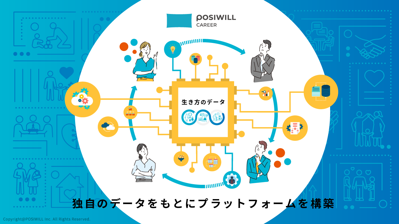 『POSIWILL CAREER』では、多くの方々の人生の軸作りに伴走するなかで、人それぞれの過去〜現在〜未来を繋ぐ”生き方のデータ”を蓄積してきました。
