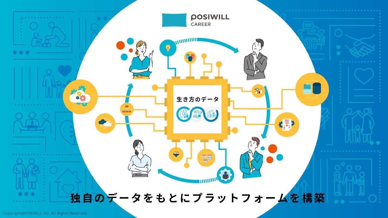 具体的には、独自開発したポジキャリ診断やトレーニングで蓄積されるデータをもとに、テクノロジーを駆使したプラットフォームを構築していきます。