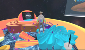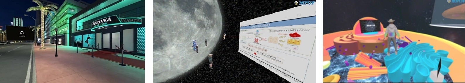 赤木研究室はメタバース上に複数の交流空間「Akagi Lab」を制作しています。アメリカの夜の町並みや宇宙空間などに近づけた空間上で、Labの参加者はそれぞれが自分でデザインしたアバターで空間に入り、歩き回ったり、空中を飛行してみたり、自由な動きで視点も変化させながら交流を楽しめます。また、作成中の「細胞空間」では、ミクロサイズになった感覚で生物の細胞内部に入り込み、細胞内部の構造を3Dで体感して学ぶこともできます。今年度からバイオや化学などの分野に取り組む生命環境化学科の1年生の必修科目「生命環境基礎」でも一部を紹介し、希望する学生には体験してもらう予定です。