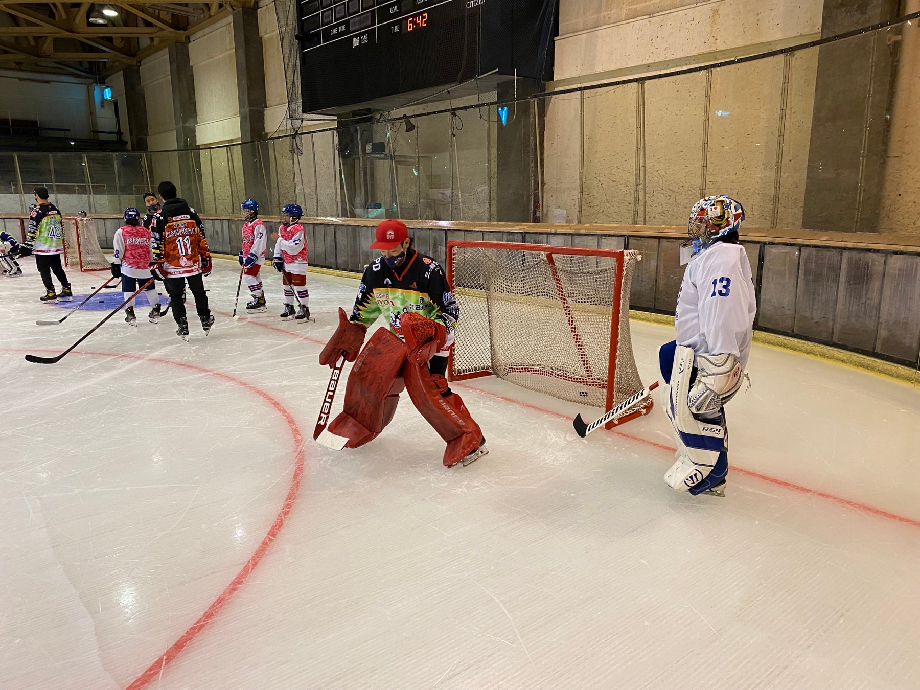 ステーションドリルを行い、ゲームシチュエーションを取り入れたスコアリングドリルなどに必要な個人スキル(スケーティング・ハンドリング・シューティング・パスレシーブ)を向上させるドリルを取り入れます。