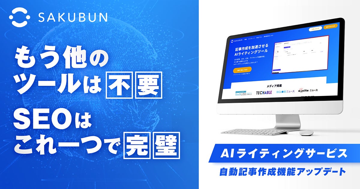 NOVEL株式会社(本社:東京都中央区銀座、代表:岡田徹) は、AIライティングツールSAKUBUN(サクブン)において、上位記事を分析して、自動で記事作成を行う機能」を実装したことをお知らせいたします。