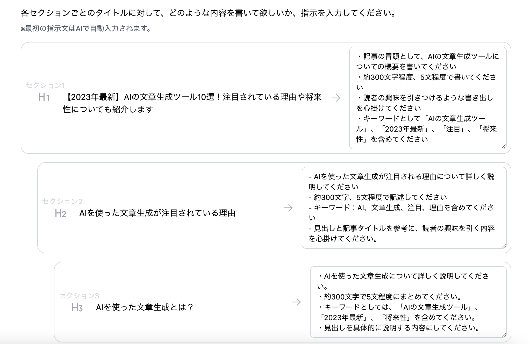 見出し(H1,H2,H3タイトル)の内容を、AIが自動作成
