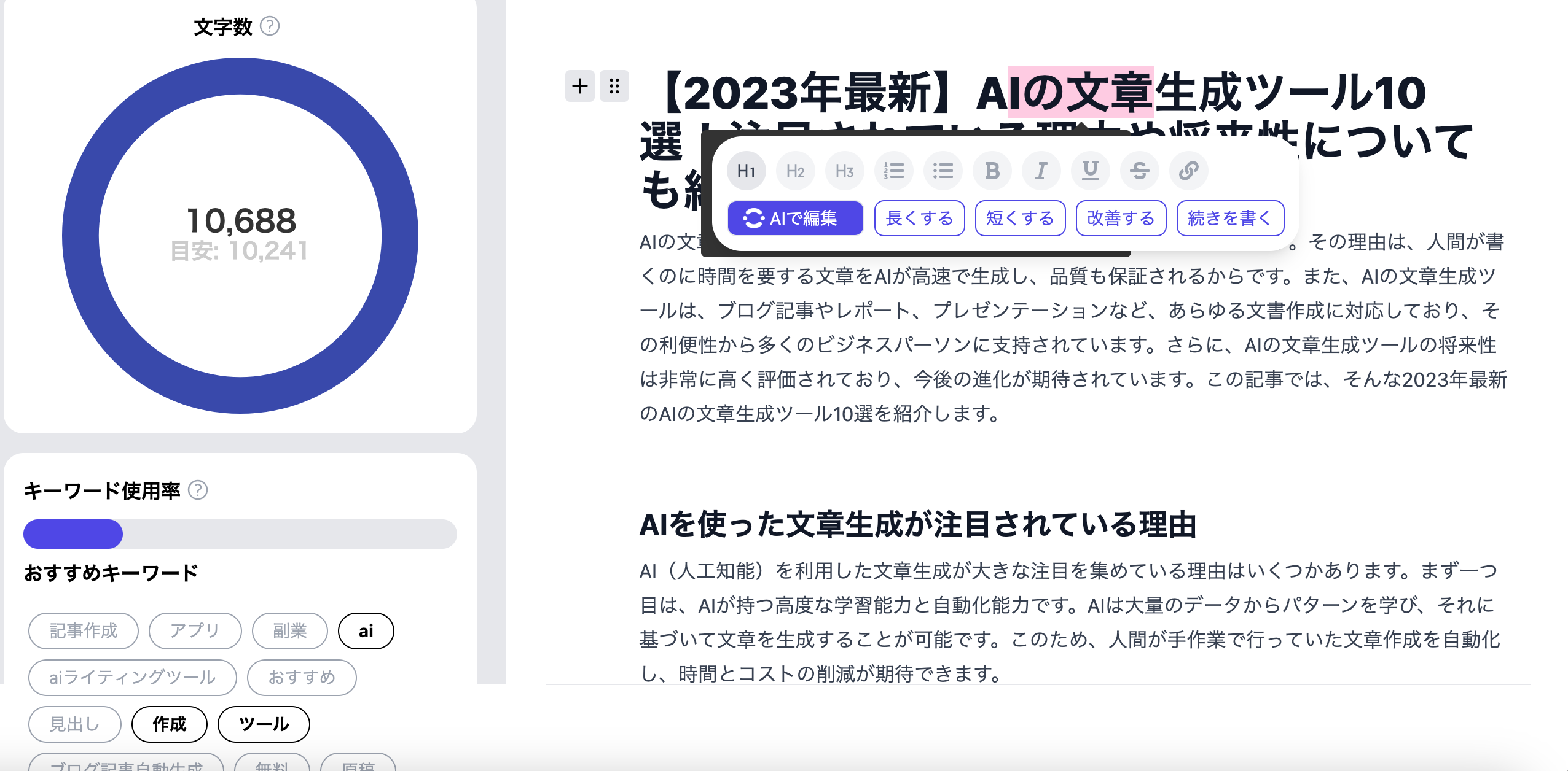 AIがSEOの観点も用いて、10000文字以上の記事を自動作成