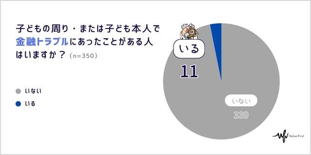 回答者350名のうち、11名の方が「子どもの周り・または子ども本人で金融トラブルにあったことがある」と答えました。
