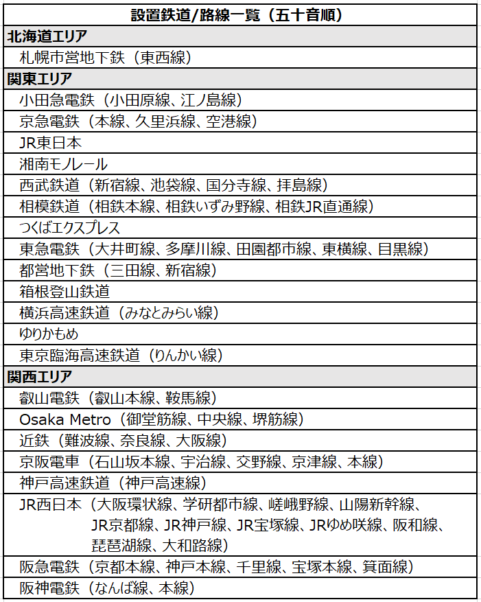 駅内の店舗(コンビニ・飲食店・商業施設等)への設置は除く。