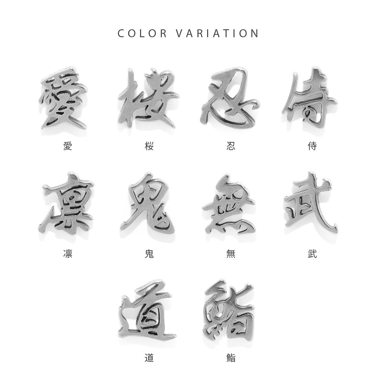 今回販売する「漢字ピアス」は10種類。
