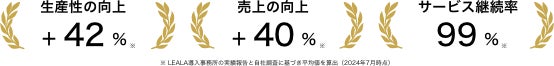 当社は、弁護士・法律事務所の業務効率化や業務品質の向上、経営基盤の強化を支援すべく、法律事務所向けクラウド業務管理システム「LEALA」を活用した業務オペレーションの構築・実行支援を行っています。また、GDPR対応や防災対策が完備された複数データセンター間でのミラーリングなど、弁護士・法律事務所が国際的にリーガルサービスを展開する上でより重要となる強固なクラウドセキュリティ環境を基盤とした法律事務所向け業務機能を提供しています。