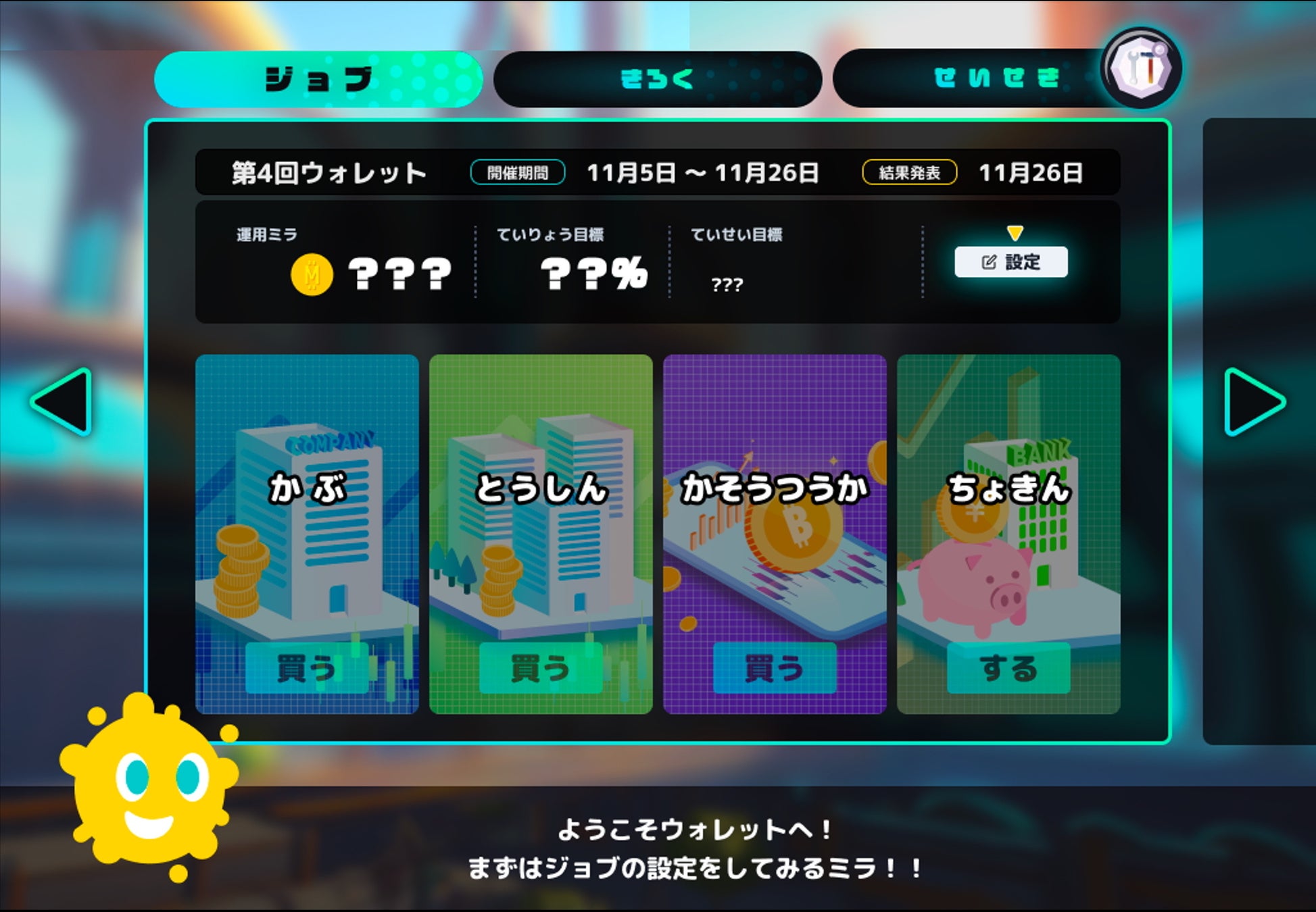 おしごと体験でゲットできるミラ(ポイント)は、バーチャル投資やカード購入に使えます。集める楽しみと運用するまなびで楽しさが続きます。
