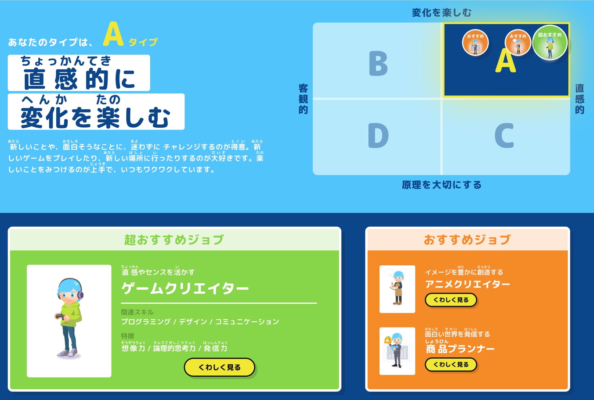 他にも専門家監修のおしごと適性診断や職業アバターの育成など、子どもの未来への興味を喚起する設計にしています。みらいいパークは、オンライン無料サービスなので、いつでも誰でもどこにいても取り組むことができます。