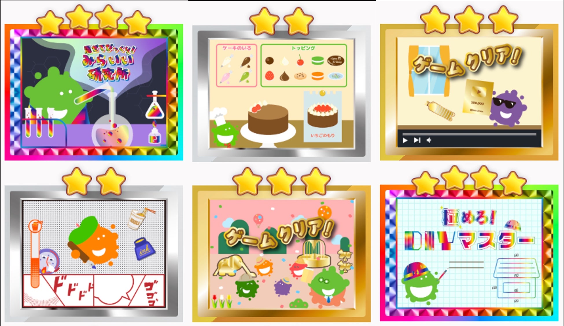 ゲームやワークショップ、コンテストをクリアすると、オリジナルイラストをゲットできます。コツコツ集めれば完成した時の達成感もアップします。