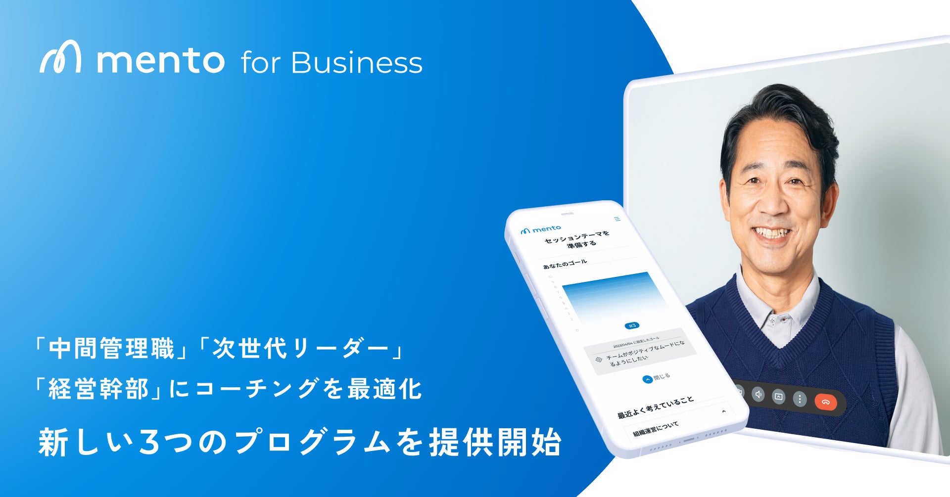 「中間管理職」「次世代リーダー」「経営幹部」にコーチングを最適化。それぞれの課題に寄り添った3つのプログラムをmentoが提供開始