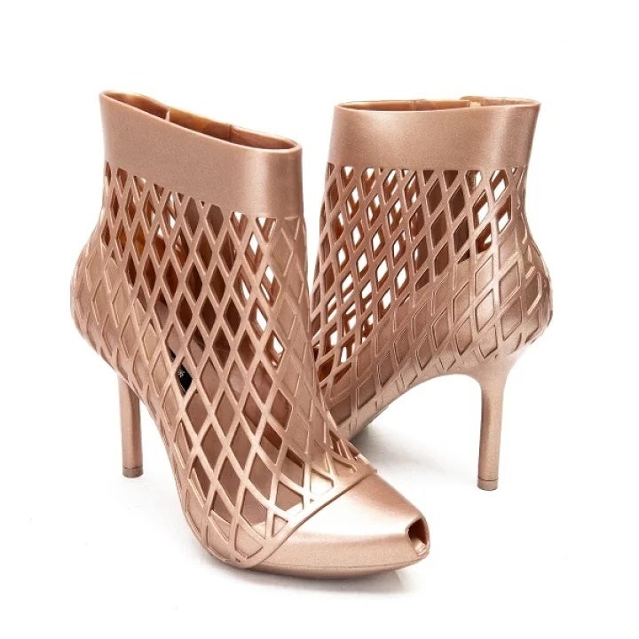 そして2011年には、Melissa Mesh Pump + Jean Paul Gaultierがコラボレーションのラインナップに新たに加わりました。ポインティッドトウのブーツは、ハイヒールと穴の開いたデザインが特徴的です。