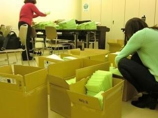 ニュースを三つ折りにしたり、ラベルを貼ったり、封入したりといった簡単な作業です。