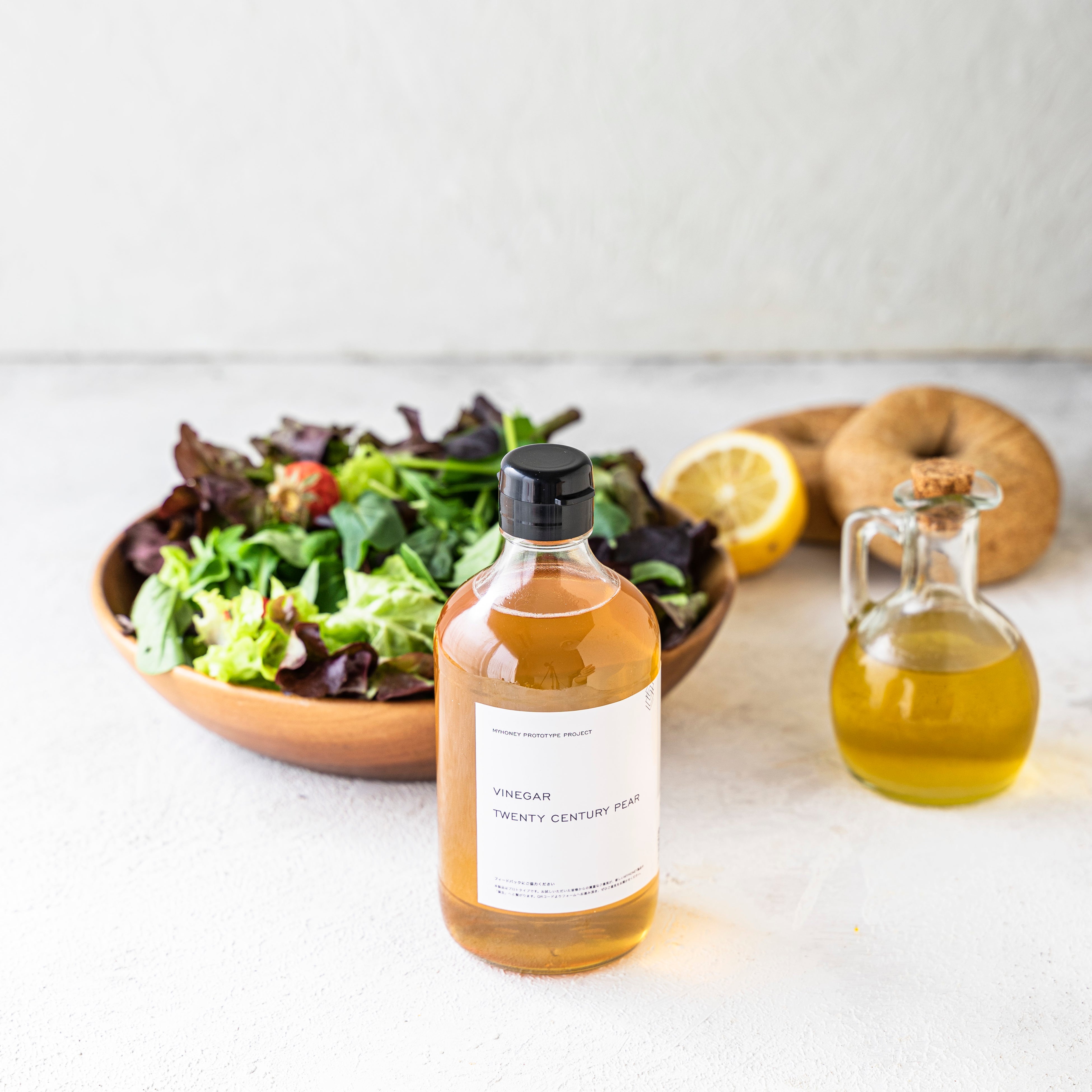 「MY HONEY VINEGAR"梨酢はちみつ" (開発ネーム*)」は、はちみつの甘みをいかして、酢のものや煮物、お寿司(酢飯)にもピッタリ。サラダやお肉料理には、オリーブオイルと、お好みで胡椒やお塩、ナッツ類などと合わせて、オリジナルドレッシング・オリジナルソースにするのもおすすめです。いつもの食卓がぐっと新鮮に、お洒落に変身するだけでなく、栄養価もUP。毎日のルーティンにぜひ、MYHONEYビネガーをプラスしてください。