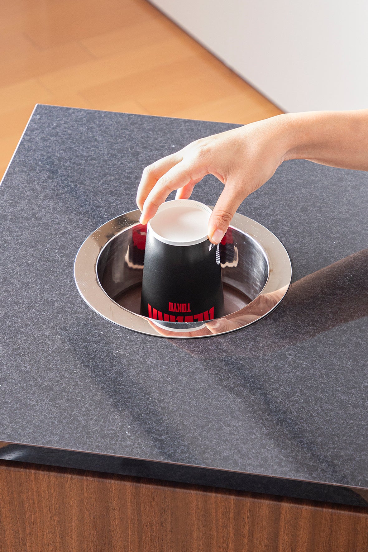 「Re-CUP WASHER」は紙コップを“可燃ごみ”から“循環資源”へと変えるための仕組みです。通常、飲み