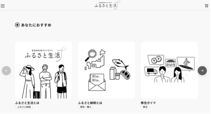 当社では、ふるさと納税における寄附者・事業者・自治体の全ての方の利便性を向上させるシステム「ふるさと納税do(全国の約7割の自治体が導入)」と「自治体マイページ(登録者数約400万人)」を運営しています。これらのシステムと「ふるさと生活」との連携により、ふるさと納税を起点として、ECサイト、観光・転職・移住といったシティプロモーションを展開していきます。