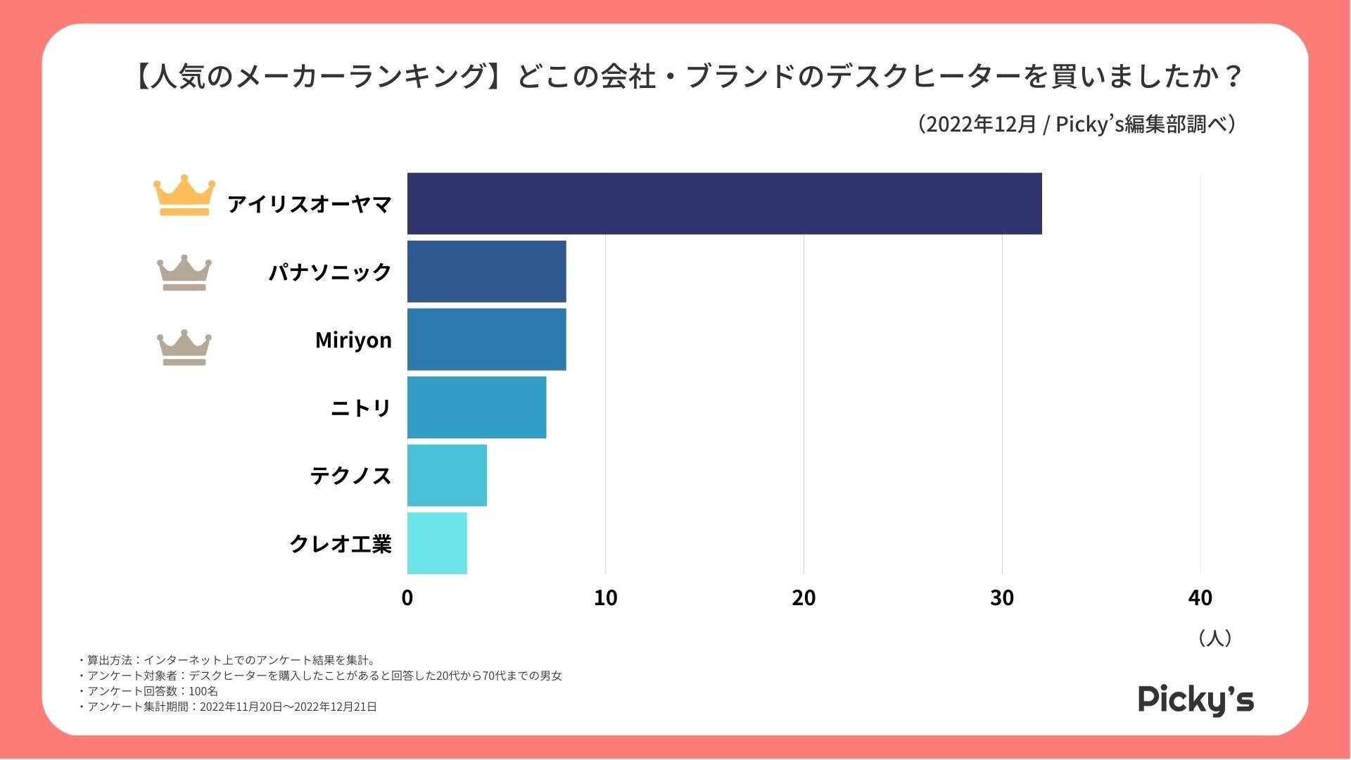 このたびPicky’s(https://rentry.jp/note/)では、デスクヒーターを買う際に意識していることや人気のメーカー・ブランドなどをインターネット上でアンケート調査を行い、ランキングを作成いたしましたので発表いたします。