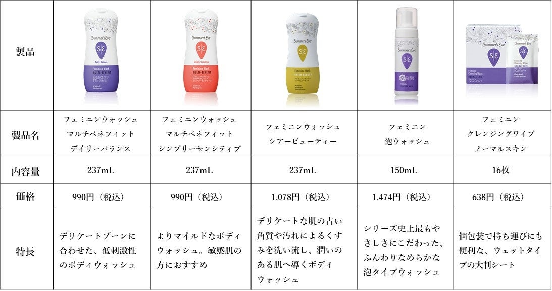 サマーズイブでは、日々のデリケートゾーンケアを生活に取り入れていただきたいという思いから、どんな人にもお使いいただけるよう、好みにあわせたさまざまな商品を展開しています。