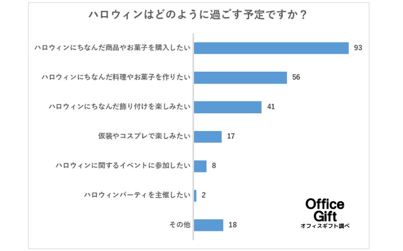 次いで、「ハロウィンにちなんだ料理やお菓子を作りたい」「ハロウィンにちなんだ飾り付けを楽しみたい」という結果が続いています。