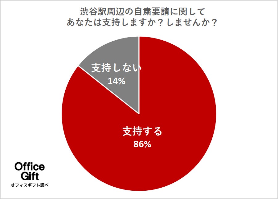 オフィスギフトでは、300名の10〜70代以上の男女を対象に「渋谷駅周辺に集まることへの自粛要請に関して、あなたは支持しますか?しませんか?」など今年のハロウィンについての調査を行いました。
