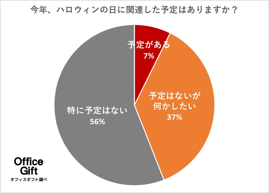 今年のハロウィンの日に予定があるのか実際に調査してみたところ、特に予定はない方がいる一方で、全体の44%の方が「予定がある」「予定はないが何かしたい」と回答しました。