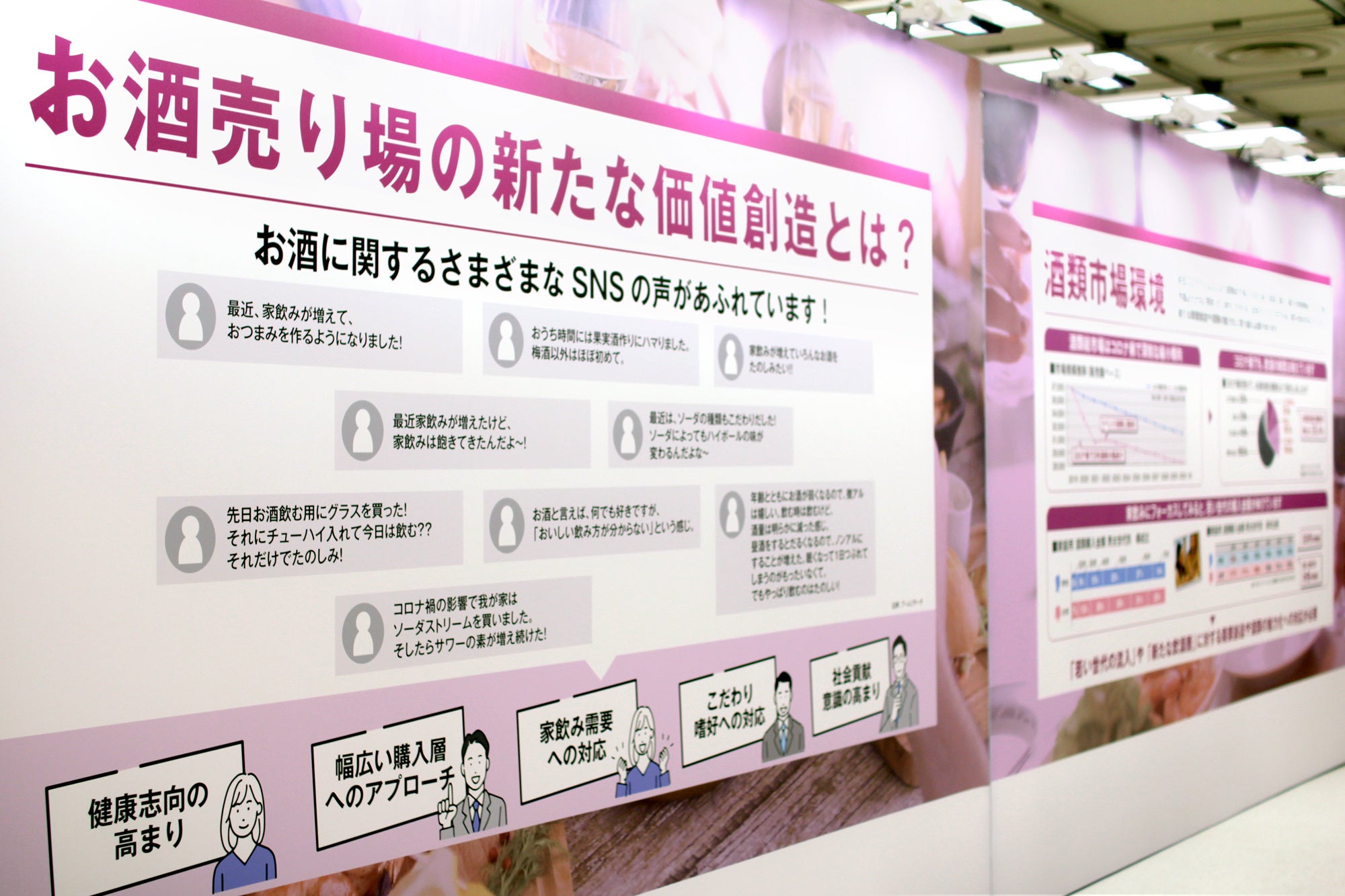 ウィズコロナの新時代を迎え、生活様式は確実に変化しています。直近の飲酒動向を見ても、商品の価格は重要な要素ながら、機能性や付加価値を求める声も高まっており、特にセルフの売場では、数ある商品の中で自分の嗜好に合った商品をお客様自身で選ぶことが更に難しくなってきたと言えるのではないでしょうか。小売店向けサイネージは、対面で接客している専門店の機能優位性を AI の活用で上手く取り込んでおり、正にデジタル化時代の日本酒ソムリエと言えます。ダイヤモンドフェアでのお得意先様の好反応を見ても、嗜好性の強いカテゴリーでは今後有力な接客手法となる可能性を秘めている為、弊社としてもセントマティック社との協業活動を積極的に推進したいと考えています。
